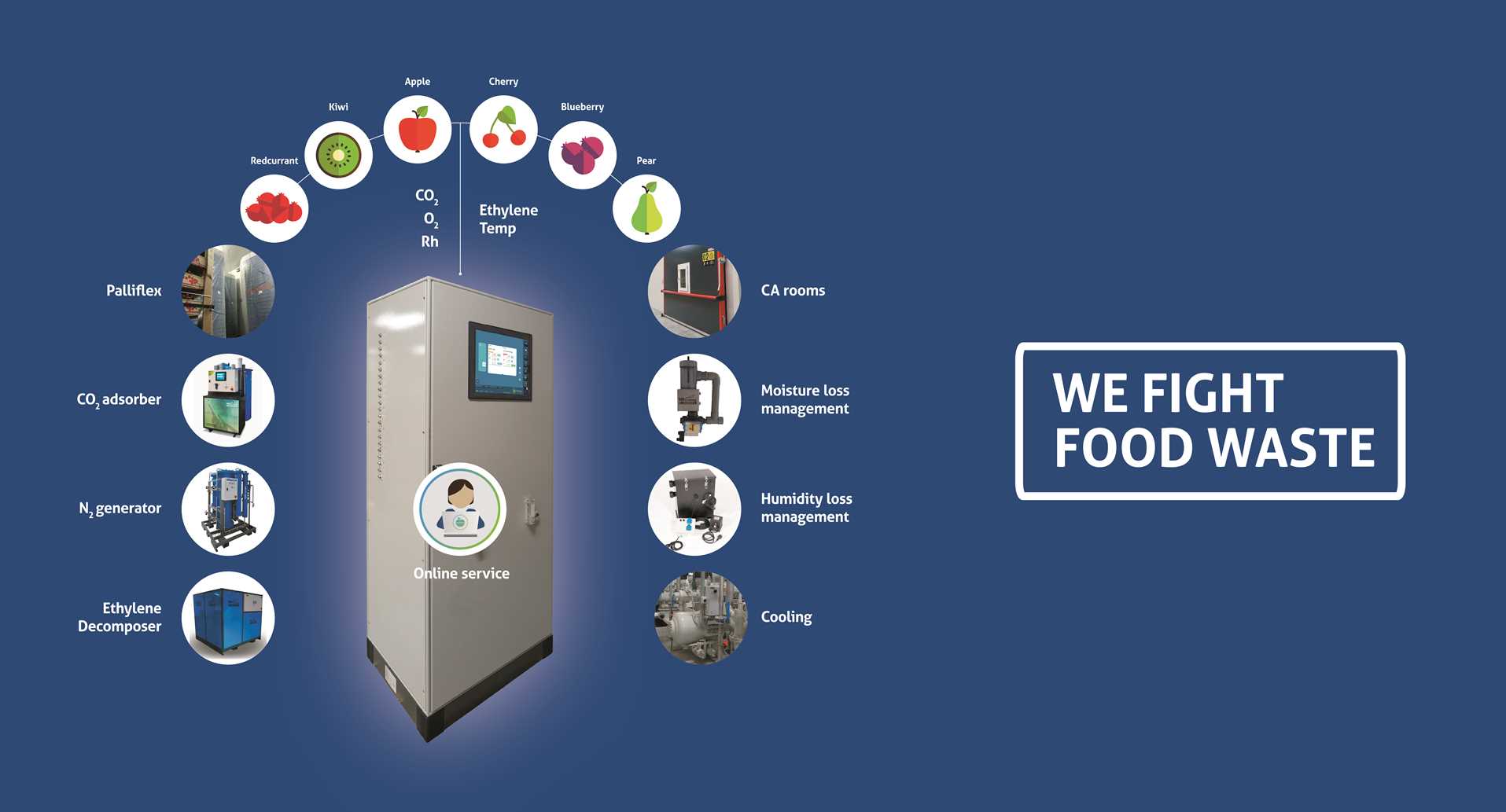 My Fruit控制系统堪称是市场上最先进的气调控制系统。My Fruit可以控制超过100个贮藏库的大型仓储,无论是我们的动态气调系统ACR,还是集成冷藏控制技术都能轻松管控。但我们也从未忽视规模较小的种植客户。我们会根据成本和功能需求,为所有客户提供最适合的解决方案。